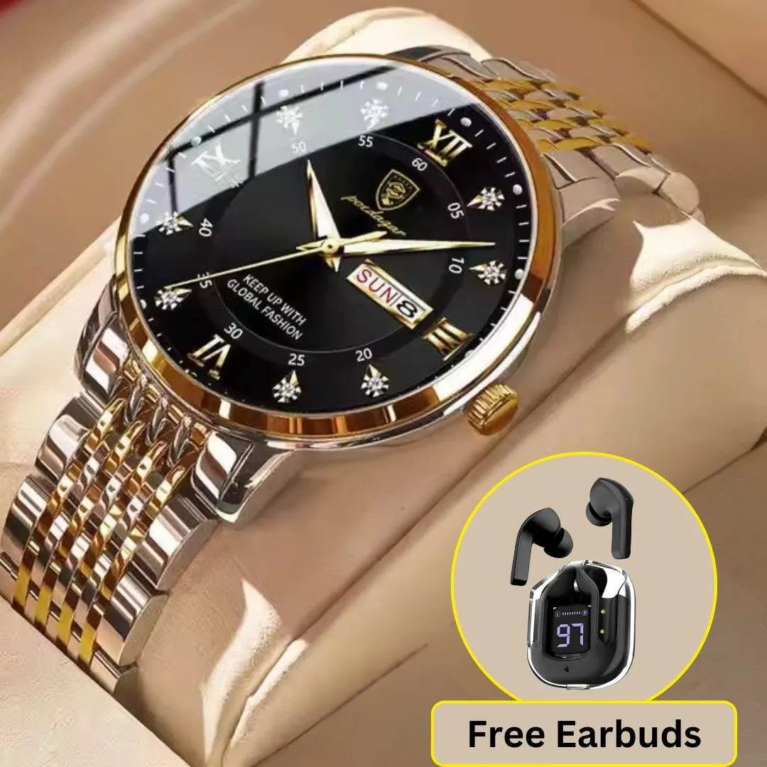 Poedagar 836 Luxury Stainless Steel Unisex Watch With Free Earbuds